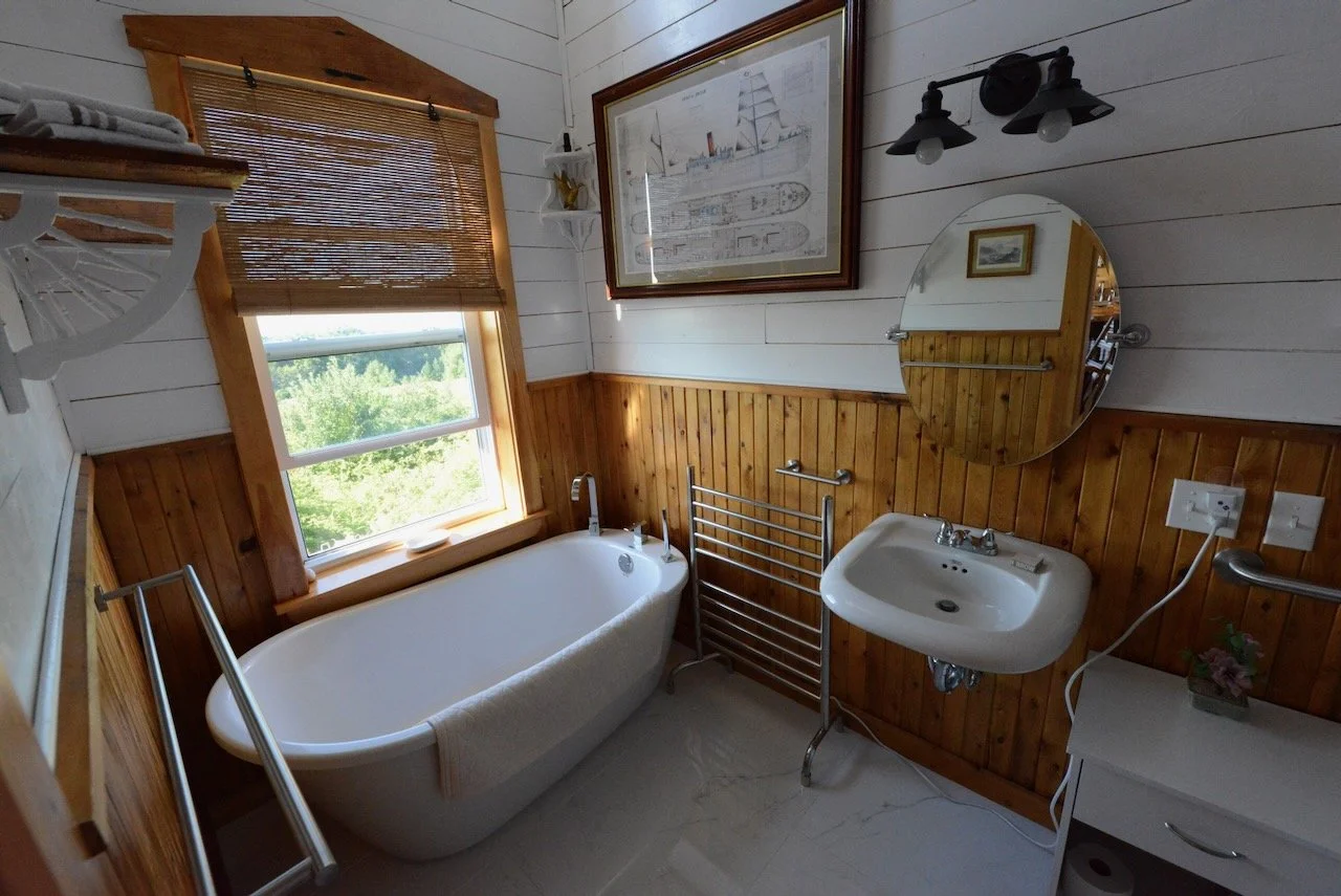 "The MareGold Centre is an outstanding place for peaceful retreat — waking up to views of the Bay of Fundy is the experience of a lifetime! The Rose Cabin is the most beautifully appointed Airbnb I have ever stayed in. We loved the antique and vintage finishing and found the modest kitchenette had everything we needed." — Airbnb Guest